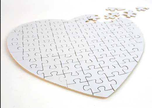 Puzzle a forma di Cuore nei formati: A4 da 119 pezzi e A3 da 232 pezzi. Interamente personalizzabile.