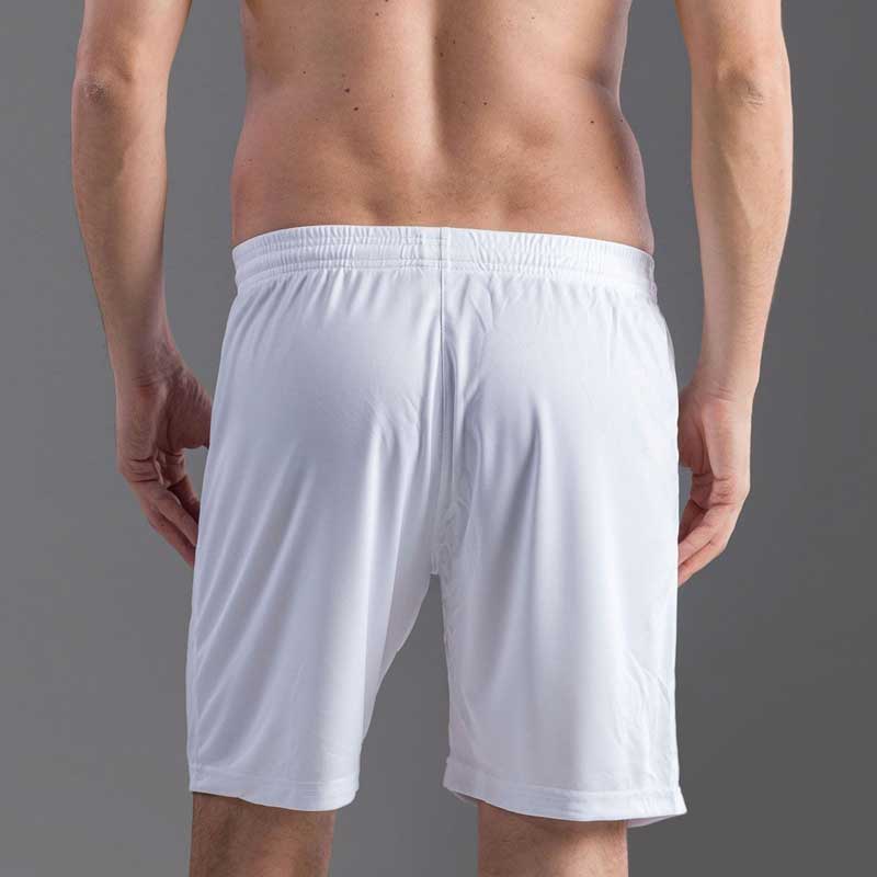 Pantaloncino sportivo multi-disciplina senza slip. Tessuto 100% Poliestere microforato traspirante 140 g/m² ad asciugatura rapida. Elastico in vita con cordoncini in tinta. Taglie: da S a 2XL.